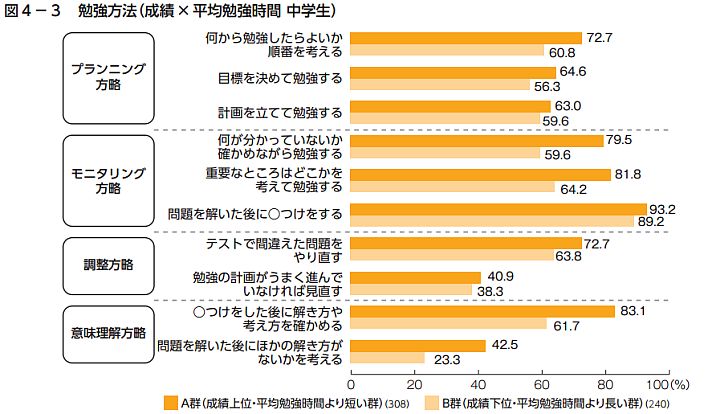 ベネッセ総合研究所の調査(小中学生の学びに関する実態調査)では、勉強時間よりも質のほうが大切だという調査結果もでています。