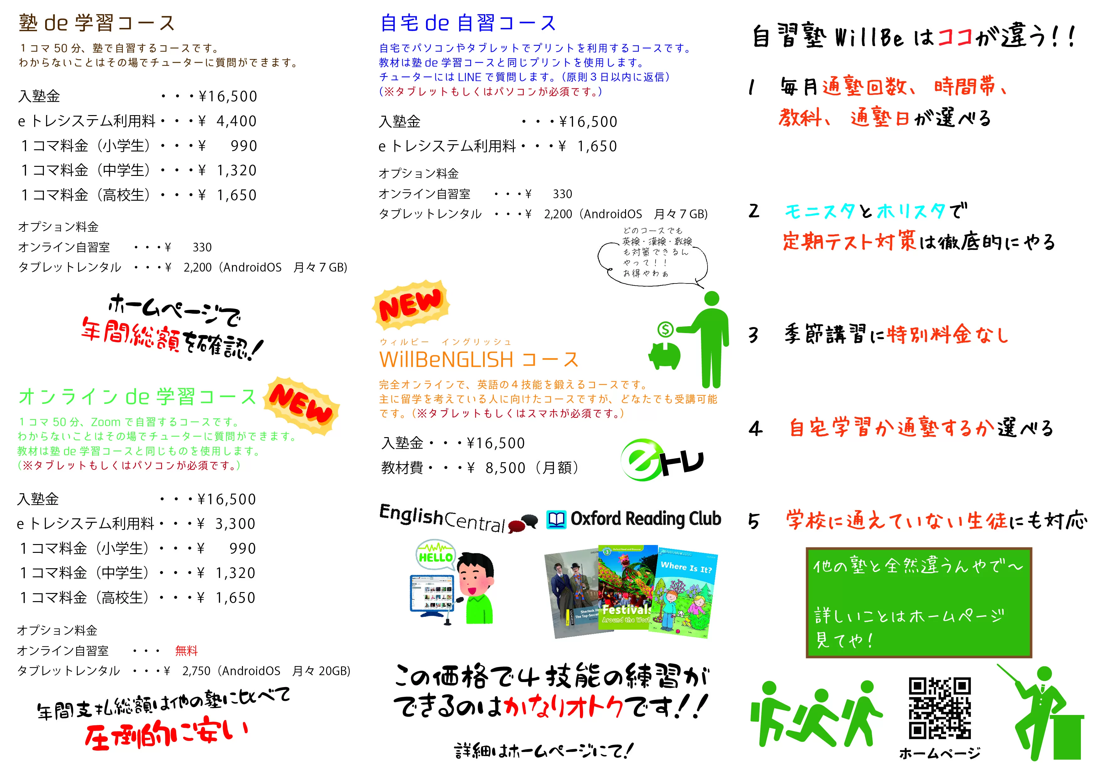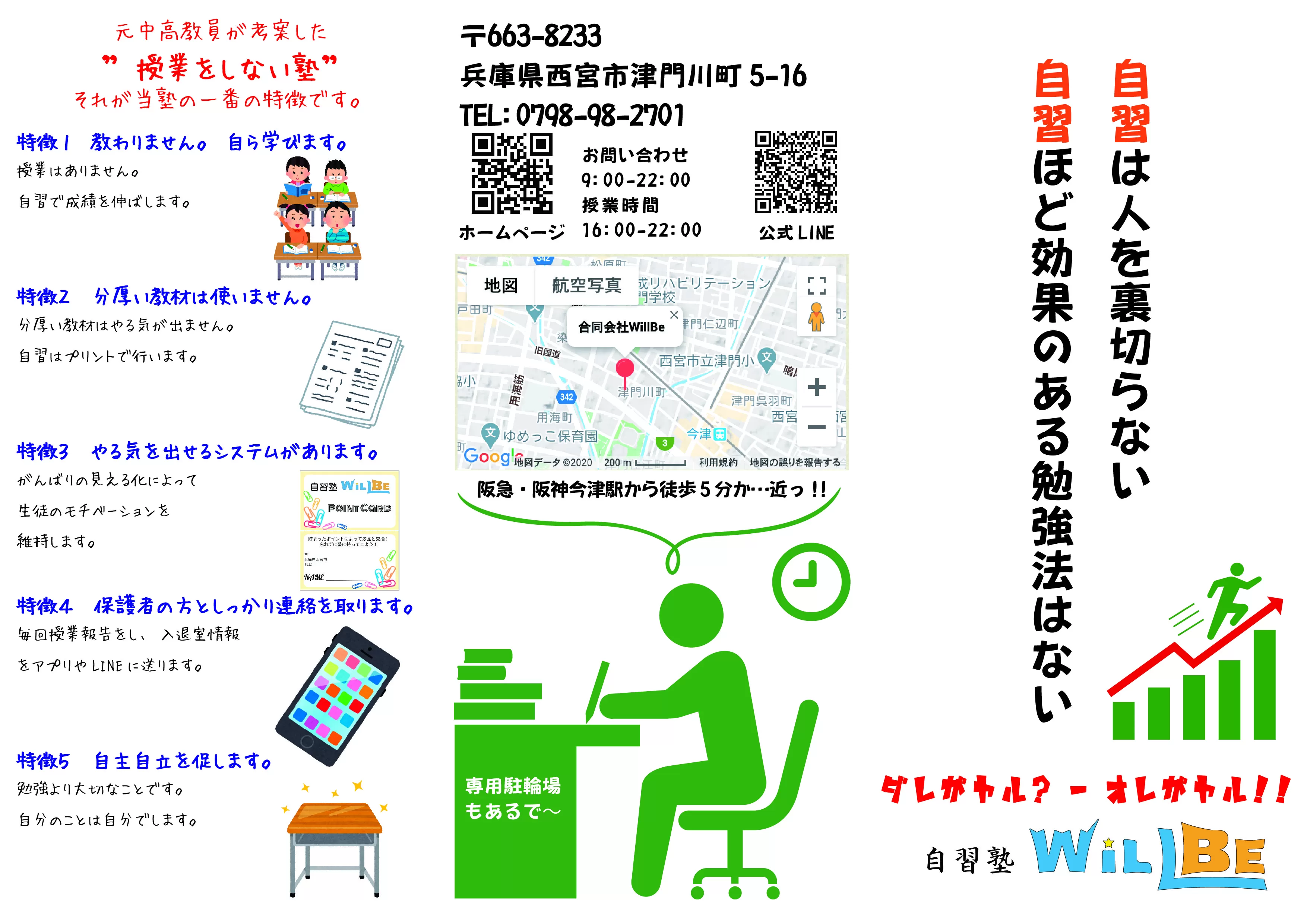 新しいパンフレットを作成しました!|西宮・今津で塾・学習塾をお探しなら自習塾WillBe